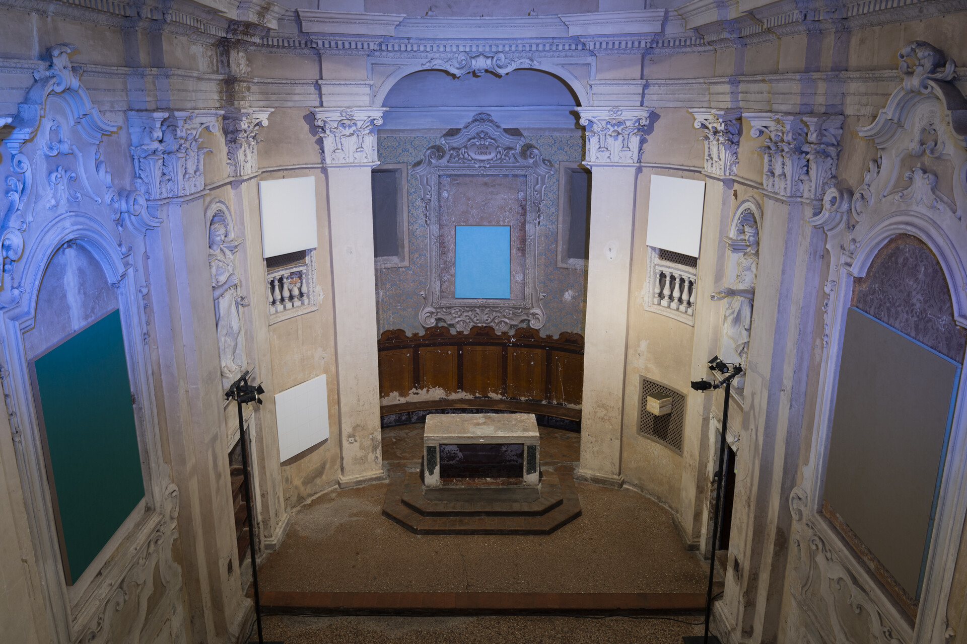Le opere di questi autori, come intende mettere in luce l’allestimento di Reggio Emilia, appaiono pensate per essere viste e fruite in uno spazio specifico, creando un dialogo profondo tra arte e architettura, favorendo un'esperienza maggiormente compenetrata nell’ambiente che le accoglie. Certo significativa in questo senso appare l’ideazione della Cappella di Huston in cui Mark Rothko tentò di ricreare l’ambiente monastico delle celle fiorentine del Monastero di San Marco, che tanto lo avevano influenzato con i loro spazi semplici e raccolti. Ma, ancor più prossima e pertinente, interamente permeata nell’architettura è la presenza delle opere - dei medesimi autori esposti nella Chiesa dei SS Carlo e Agata - all’interno della storica e illustre dimora estense di Sassuolo, anch’essa progettata nel 1634 da Bartolomeo Avanzini. Il Conte Giuseppe Panza di Biumo, con illuminato mecenatismo, commissionò in effetti a loro, a Palazzo Ducale nel 2001, cinquantuno opere, progettando il risarcimento degli spazi svuotati dalle spoliazioni di dipinti del Boulanger, del Guercino, di Salvator Rosa, restituendo esemplarmente vitalità e funzioni rinnovate all’imponente scenario. (Giovanni Nicolini)